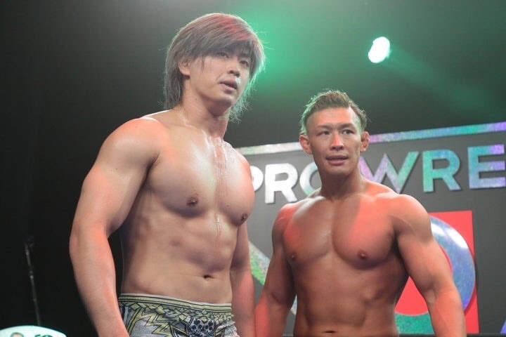 同い年=高田延彦さんと、弟orいとこのボーダーライン=アレクサンダー大塚さんの握手画像です。
