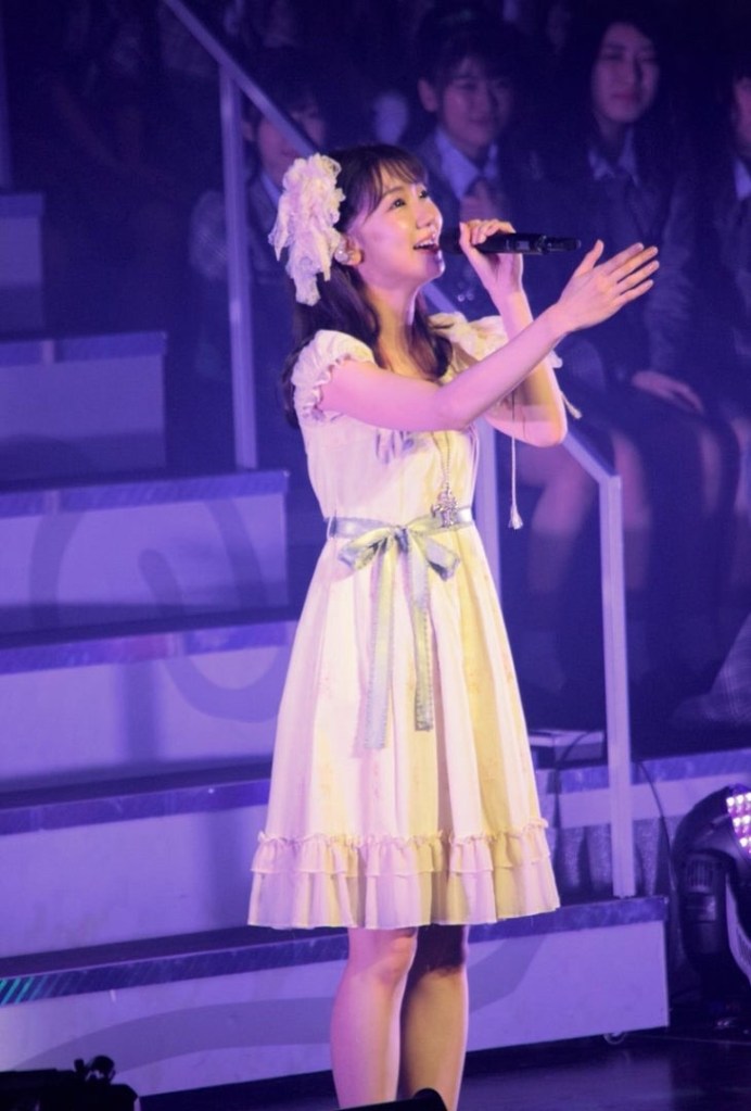 そこでは画像の板野友美さんが歌ってました。