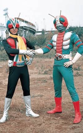 この画像は、仮面ライダーV3とライダーマンっていう略称=V3で途中から加入した後の2ショットです。